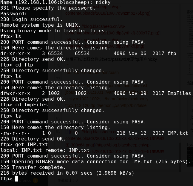 发现注入可以读取文件,读/etc/passwd发现ftp用户nicky