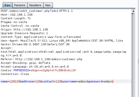 admin界面有用户管理,修改密码处存在漏洞,可以指定用户修改,改掉id=1的用户