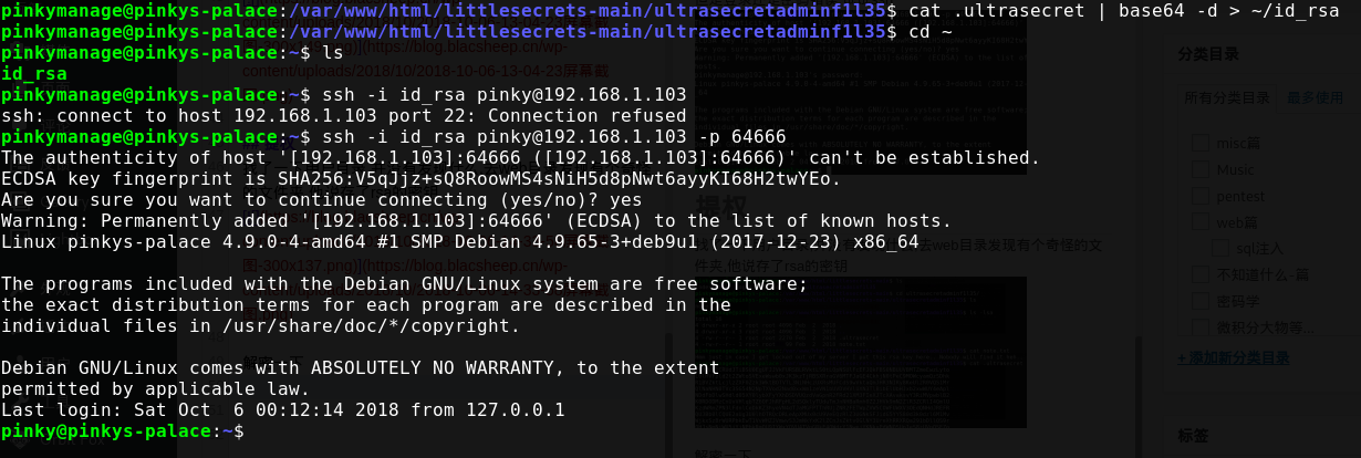 拿到明文:3pinkysaf33pinkysaf3 但是登录还是密码错误,试试ssh