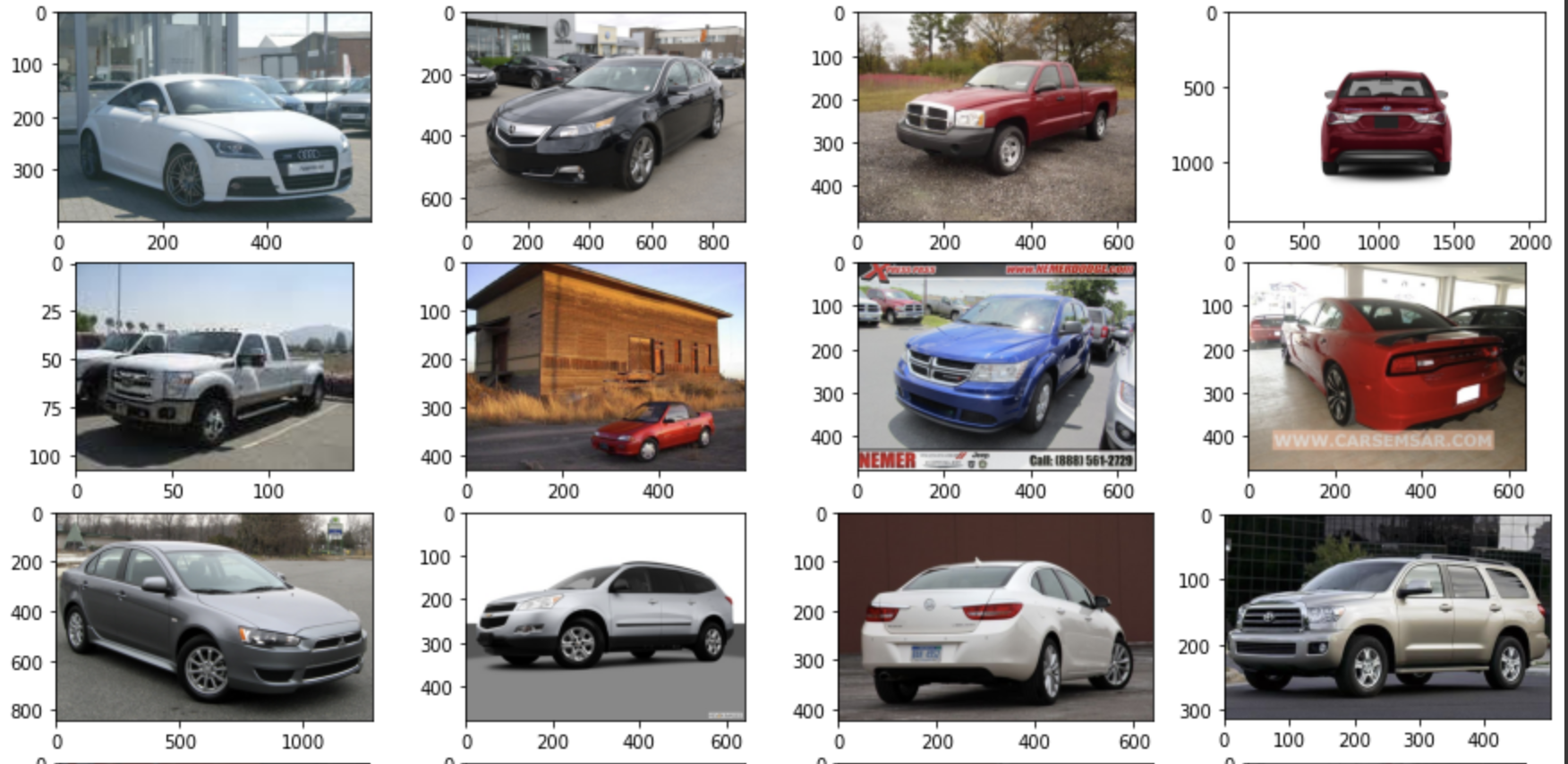 首先斯坦福大学的汽车数据集. 展示一下训练的图片大概长什么样子.