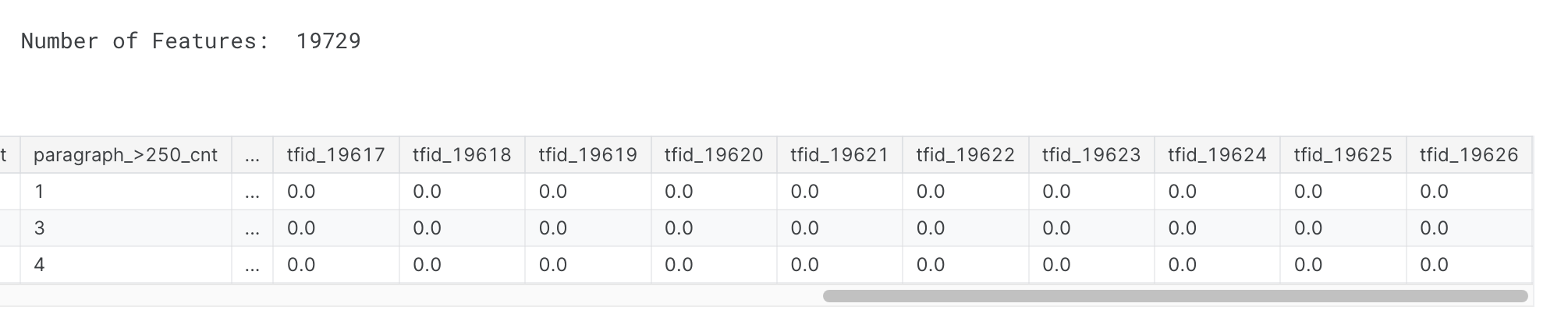 可以看到特征数量直接开始爆炸, 但tf-idf的老问题还是存在